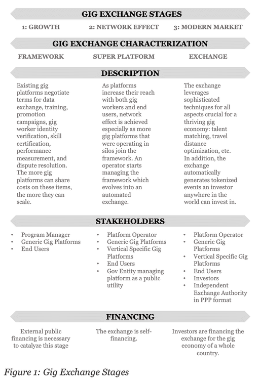 Ultimately, in its mature stage, the Gig Exchange for the gig economy of a whole country is financed by investors. Like the stock market, investors can win or lose when they invest in impact tokens (See figure 2).